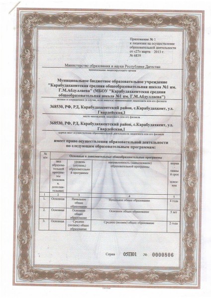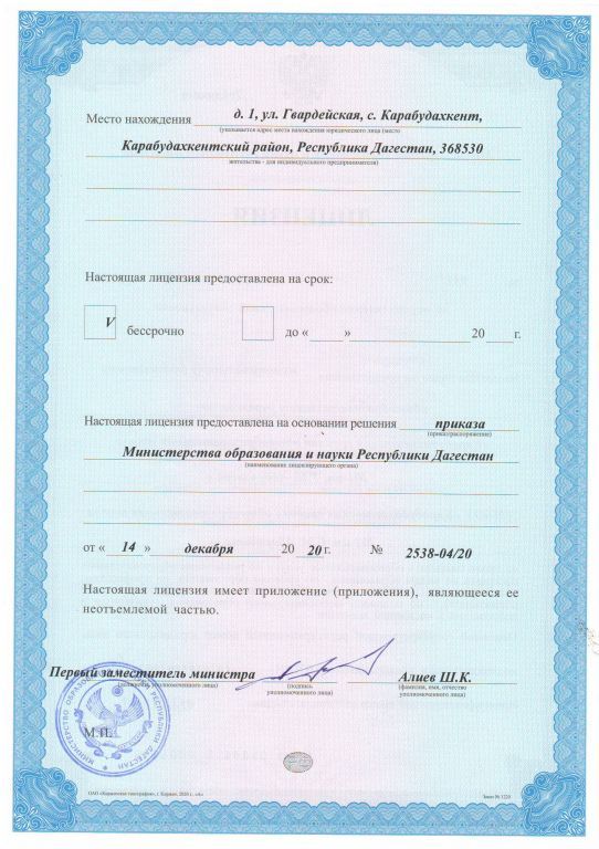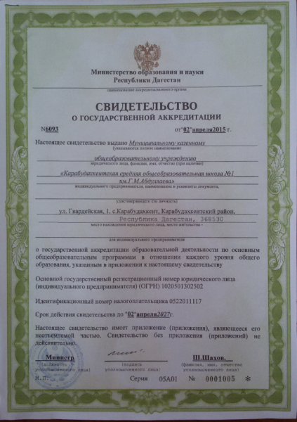 Адрес местонахождения образовательной организации* 368530, Республика Дагестан Карабудахкентский район селение Карабудахкент улица ул Агалава Галимова дом №1